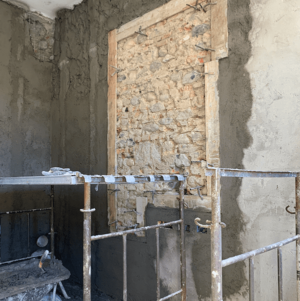 Posa di intonaci macroporosi per il risanamento dell’umidità di risalita capillare.